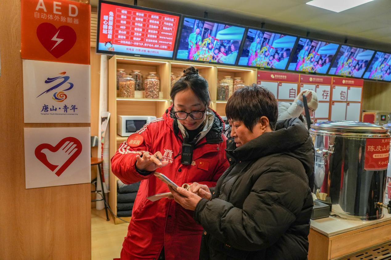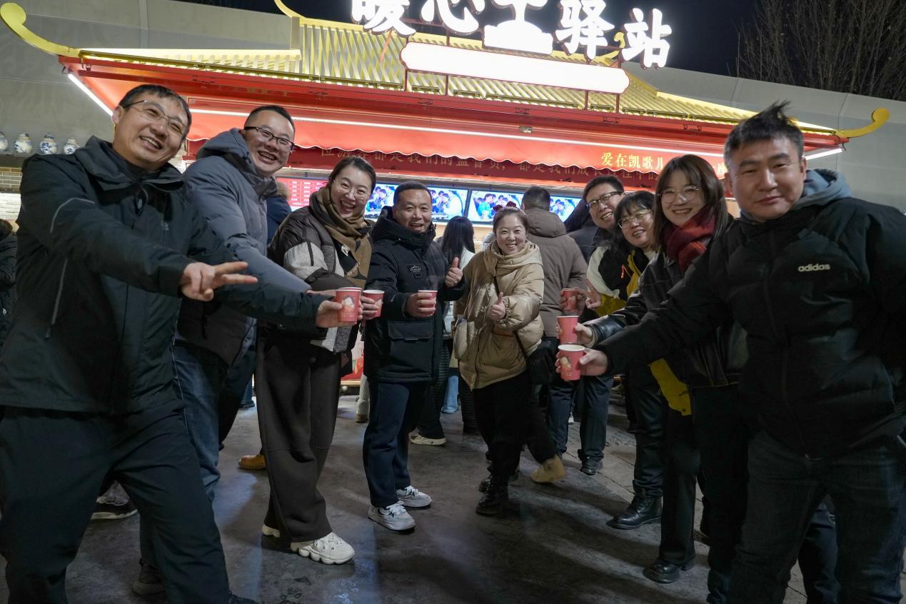 在景区灵鹿广场,红色“暖心驿站”格外醒目。驿站内,工作人员正为游客递上热气腾腾的姜汤和梨汤。“冬天逛景区最怕受冻,这里能随时喝到热饮,还能租轮椅,太贴心了!”来自北京的游客李女士称赞道。据景区负责人介绍,驿站每日免费提供姜汤、梨汤等驱寒饮品,并配备医药箱、微波炉、婴儿车、轮椅等设施,12个“暖心驿站”日均服务游客超1万人次。此外,驿站外设有休息座椅,游客可在此短暂休憩,感受“家”的便利。